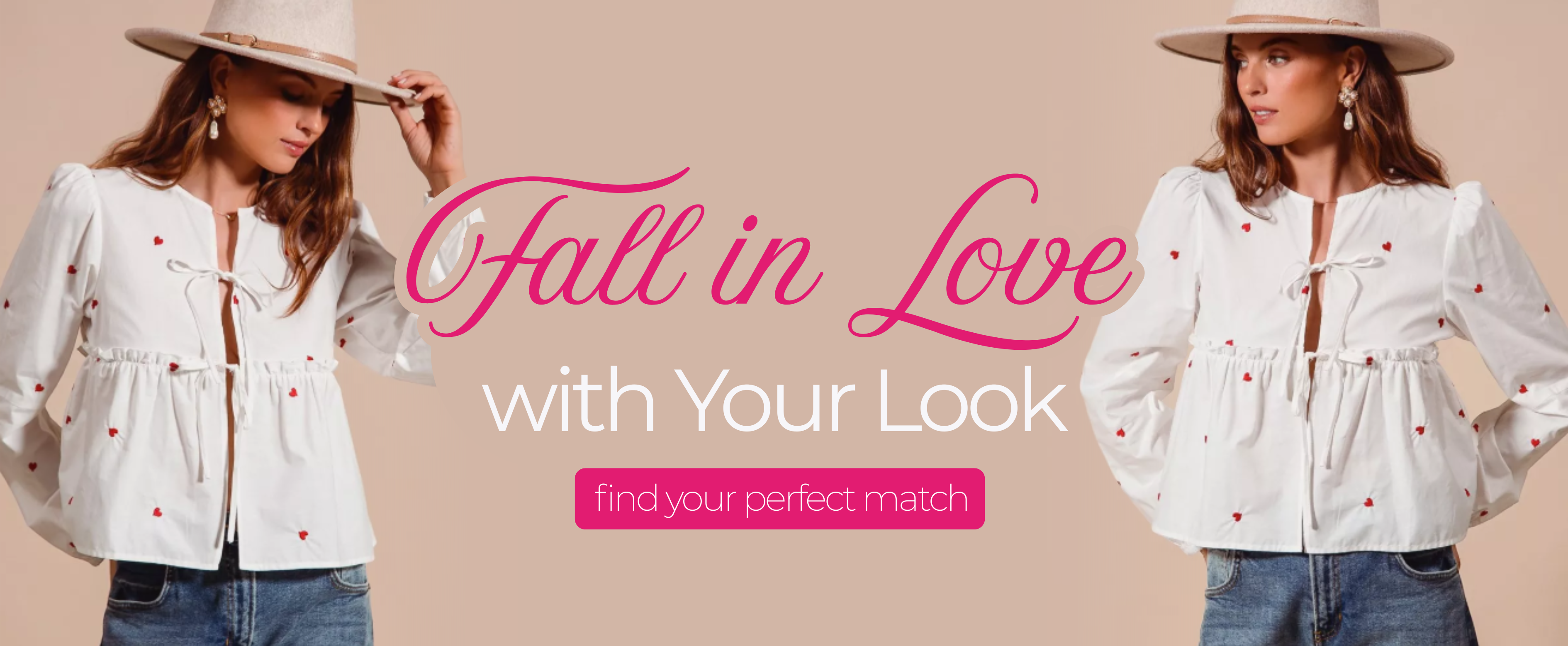 Blush/Red All Over Heart Ribbon Tie Baby Doll Valentine Blouse