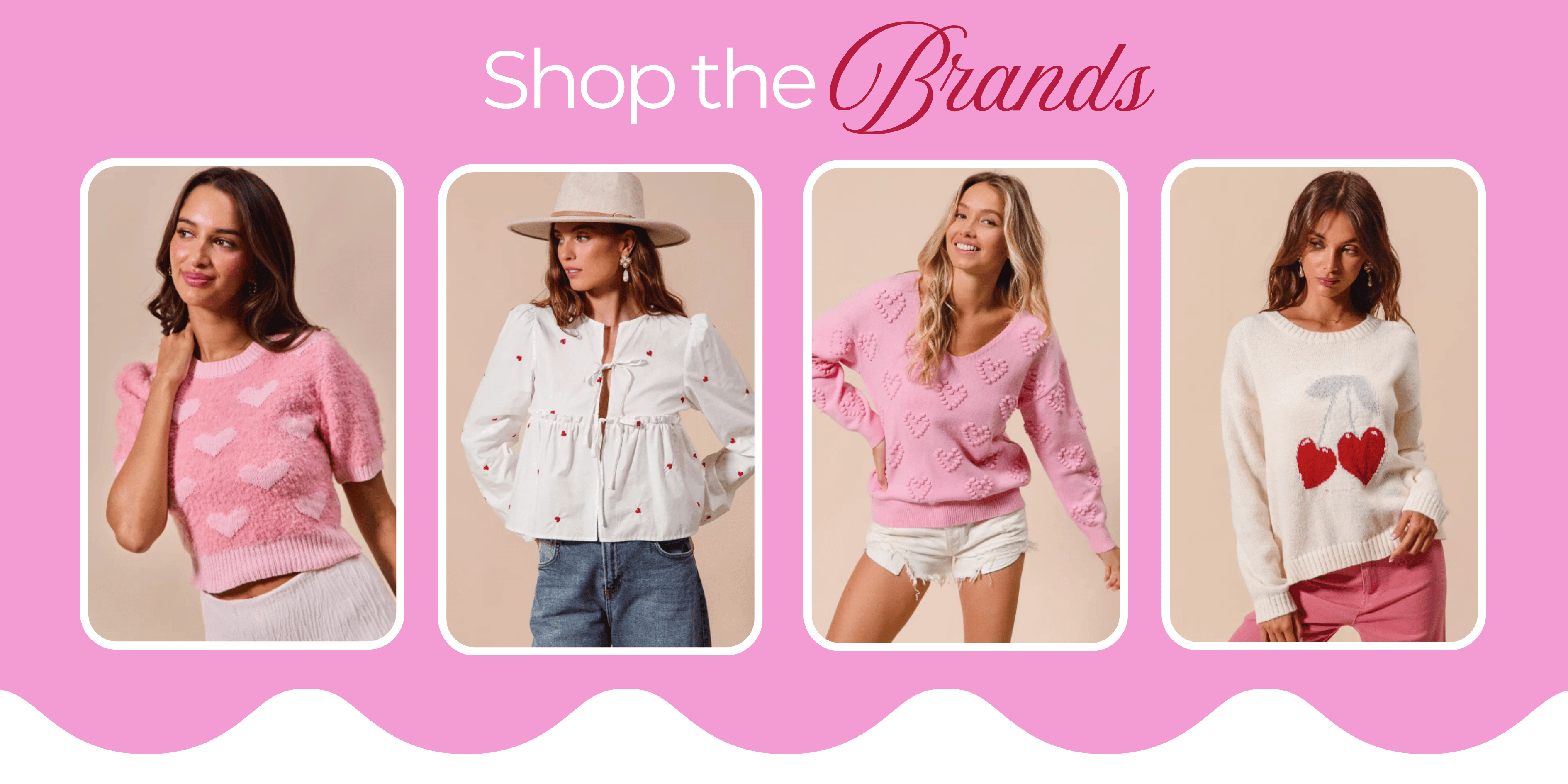 Pink All Over Heart Valentine Cropped Sweater Top