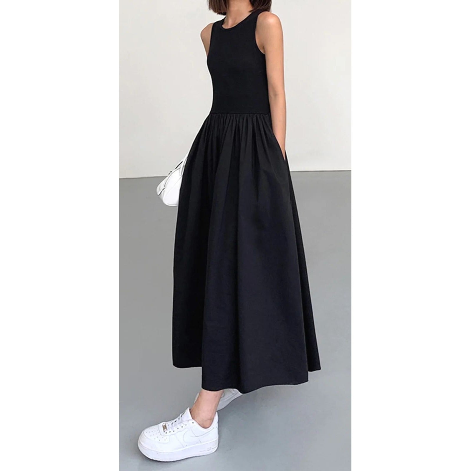 Commense Womens Black Sleeveless Maxi Dress With Pockets ~Size Medium