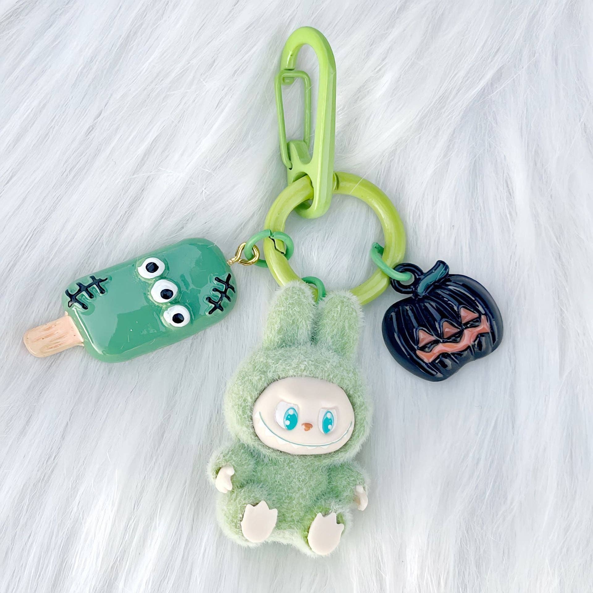 Halloween flocking mini Labubu keychain bag pendant: Gray Sitting Position