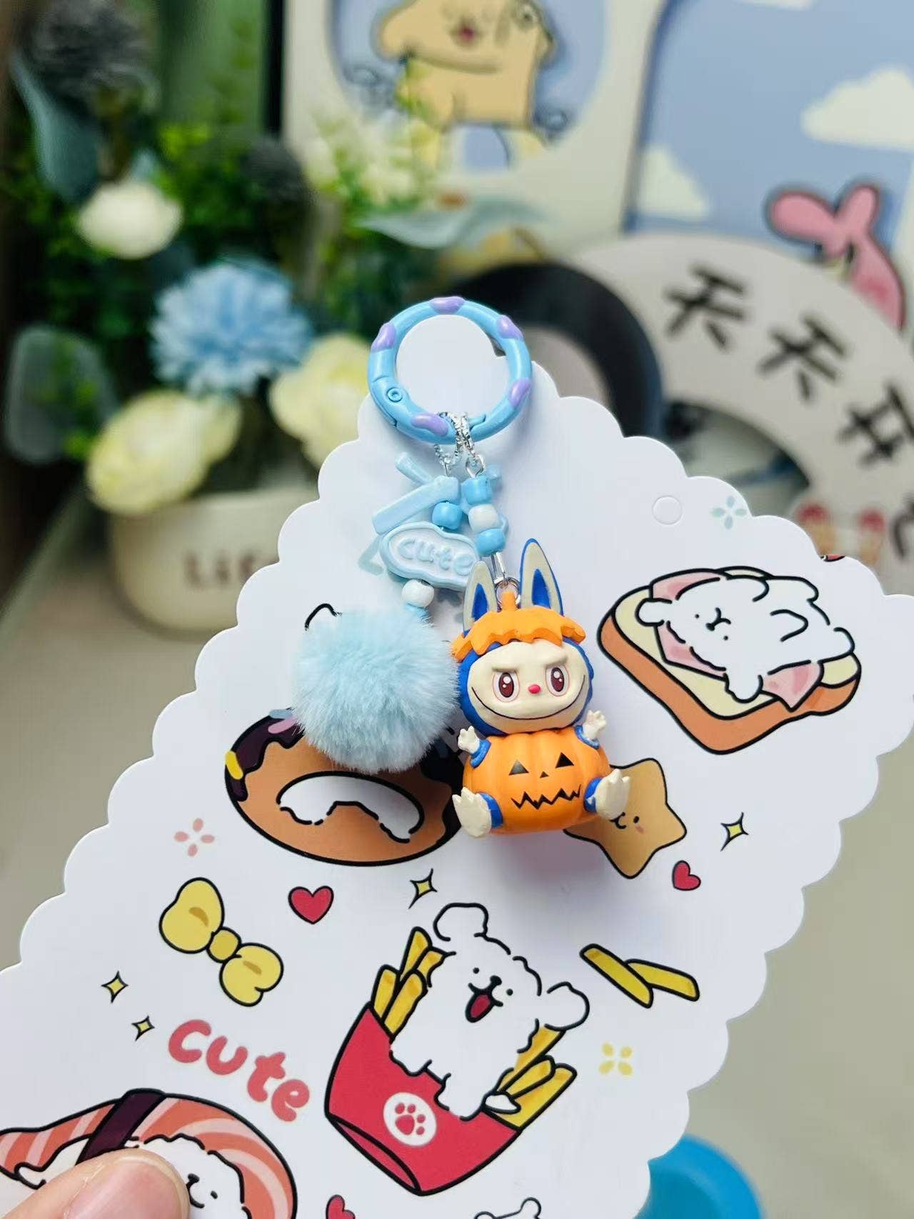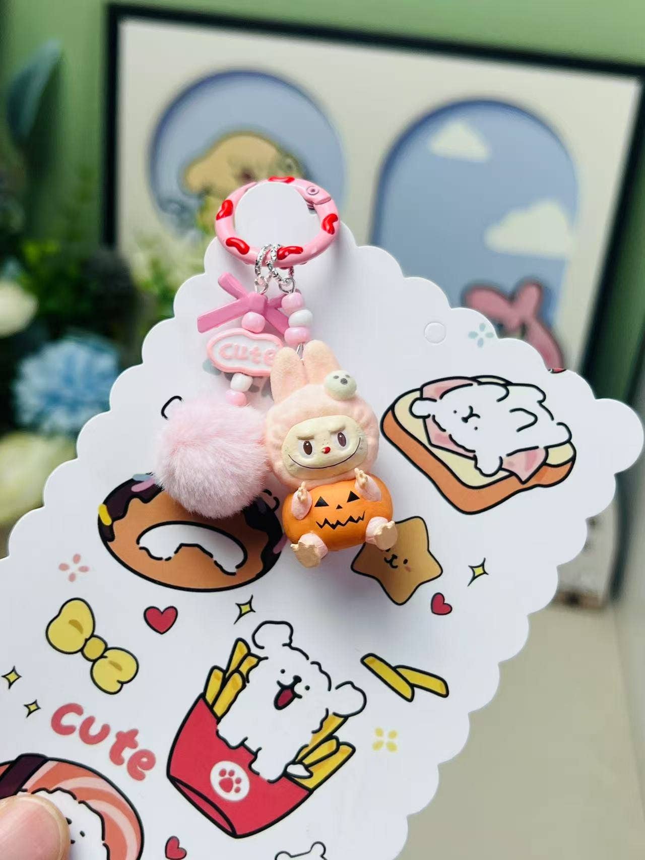Halloween pumpkin labubu keychain bag pendant: Black flocking