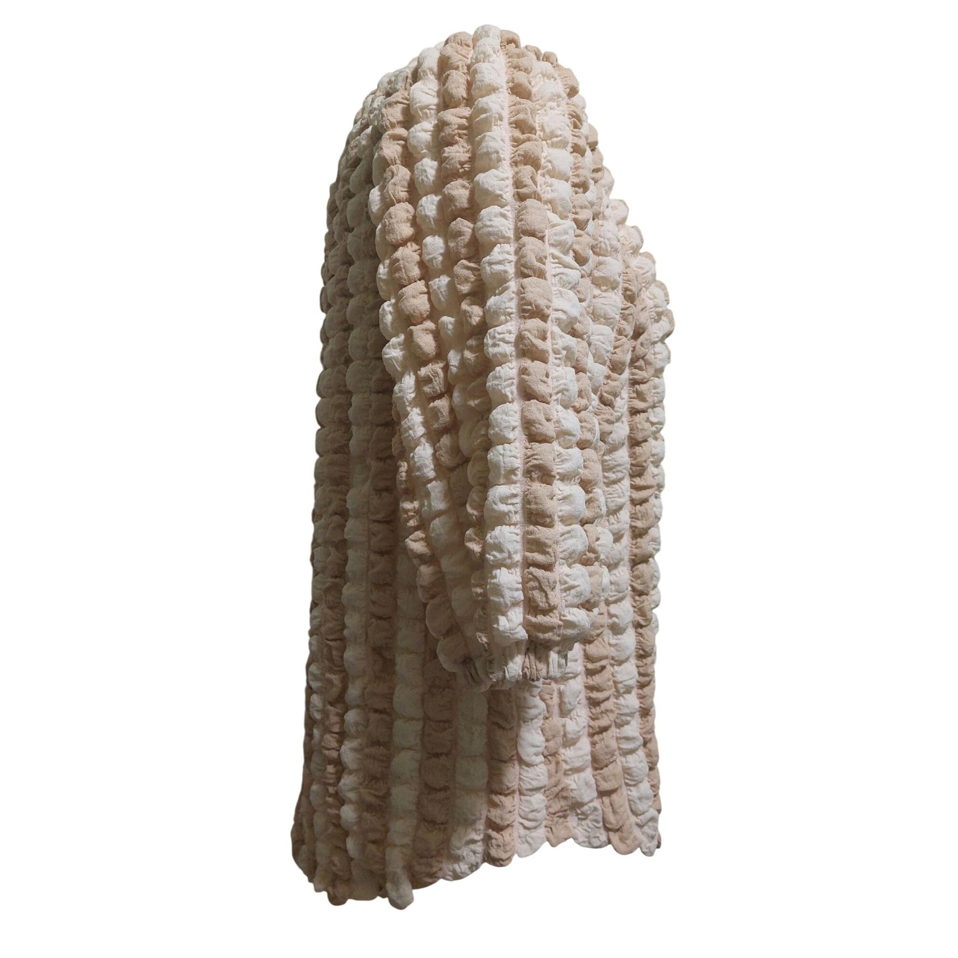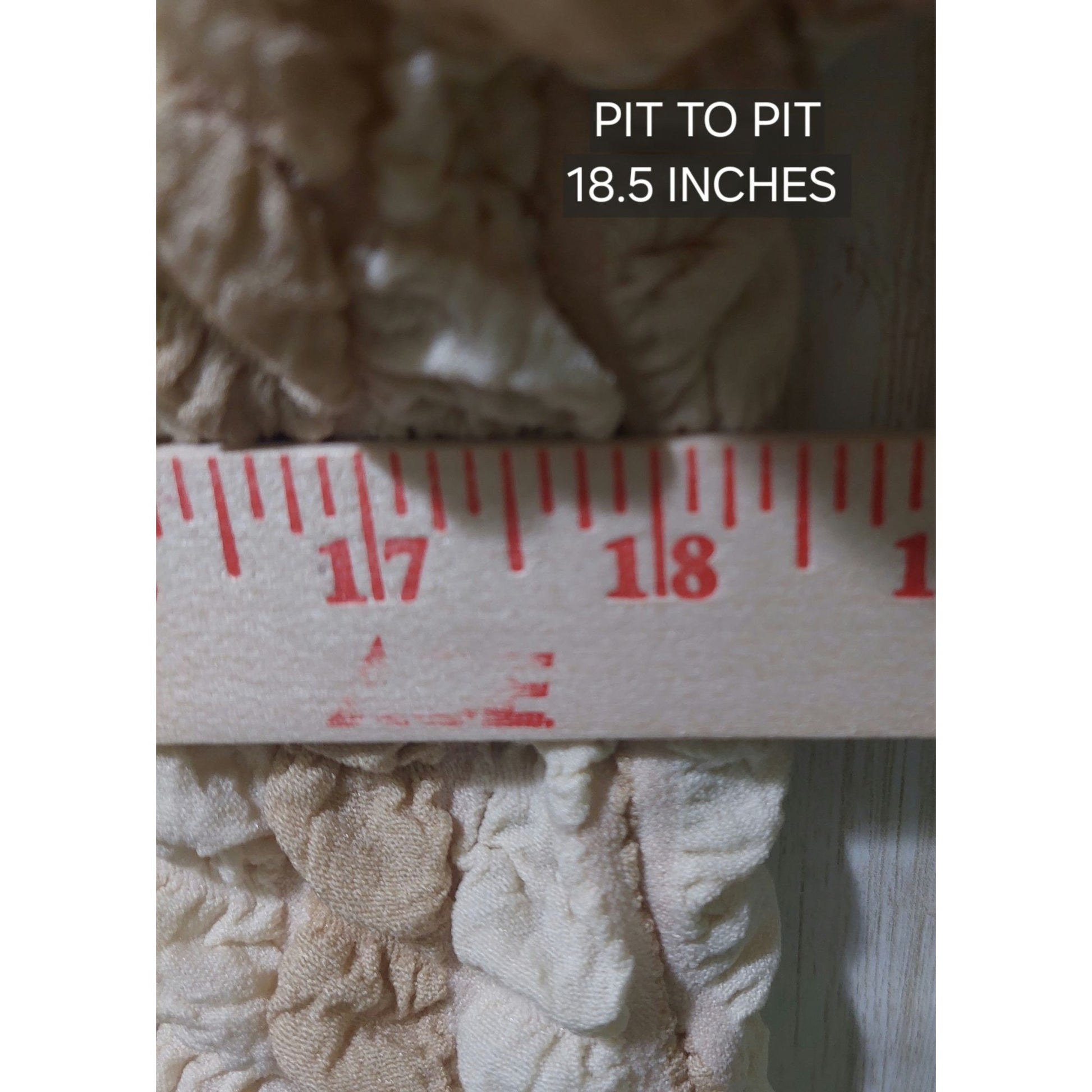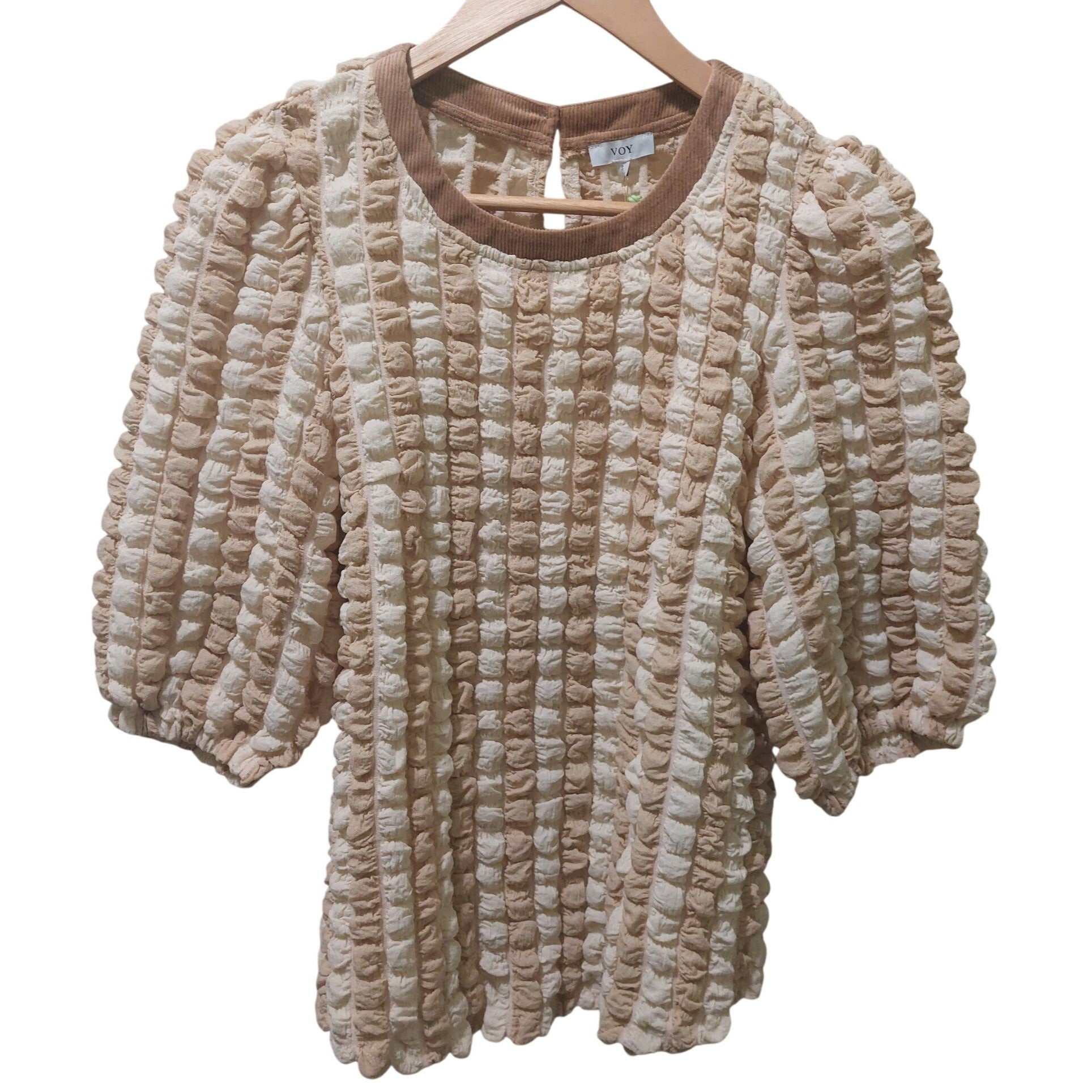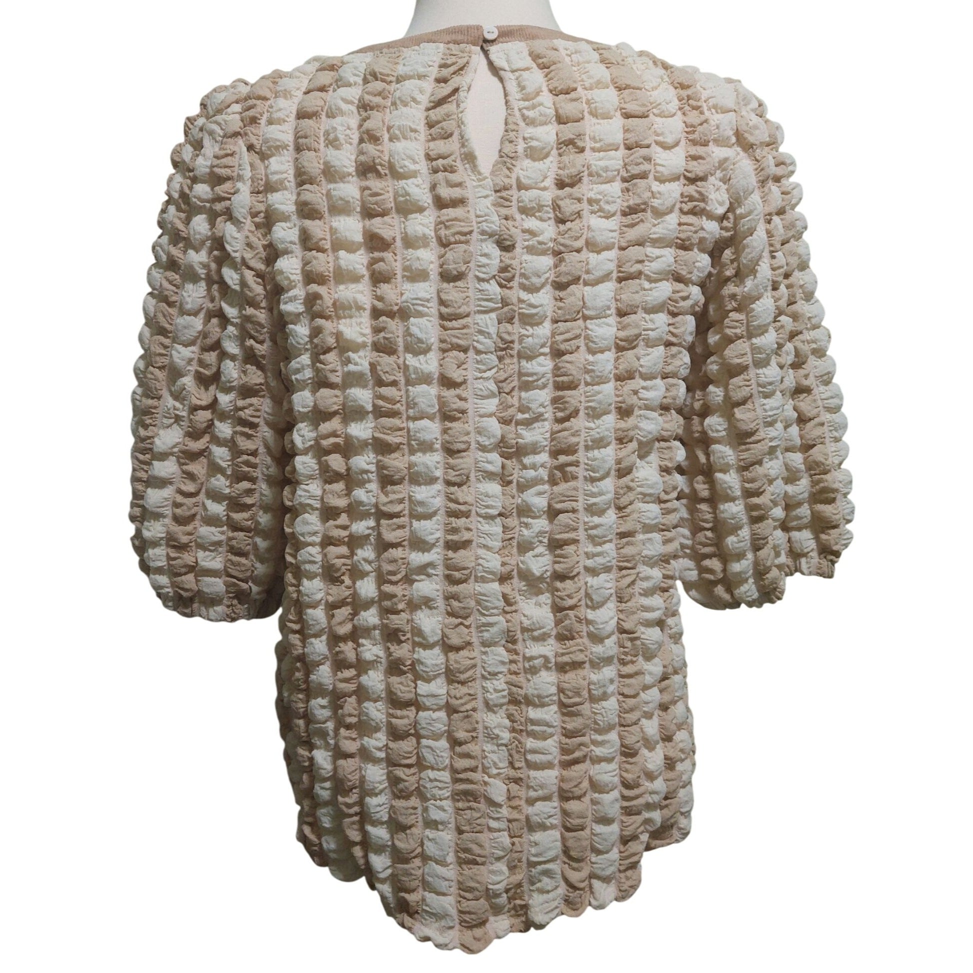 Voy Textured Beige & Cream Puff Sleeve Top~Stretchy~Size SMALL