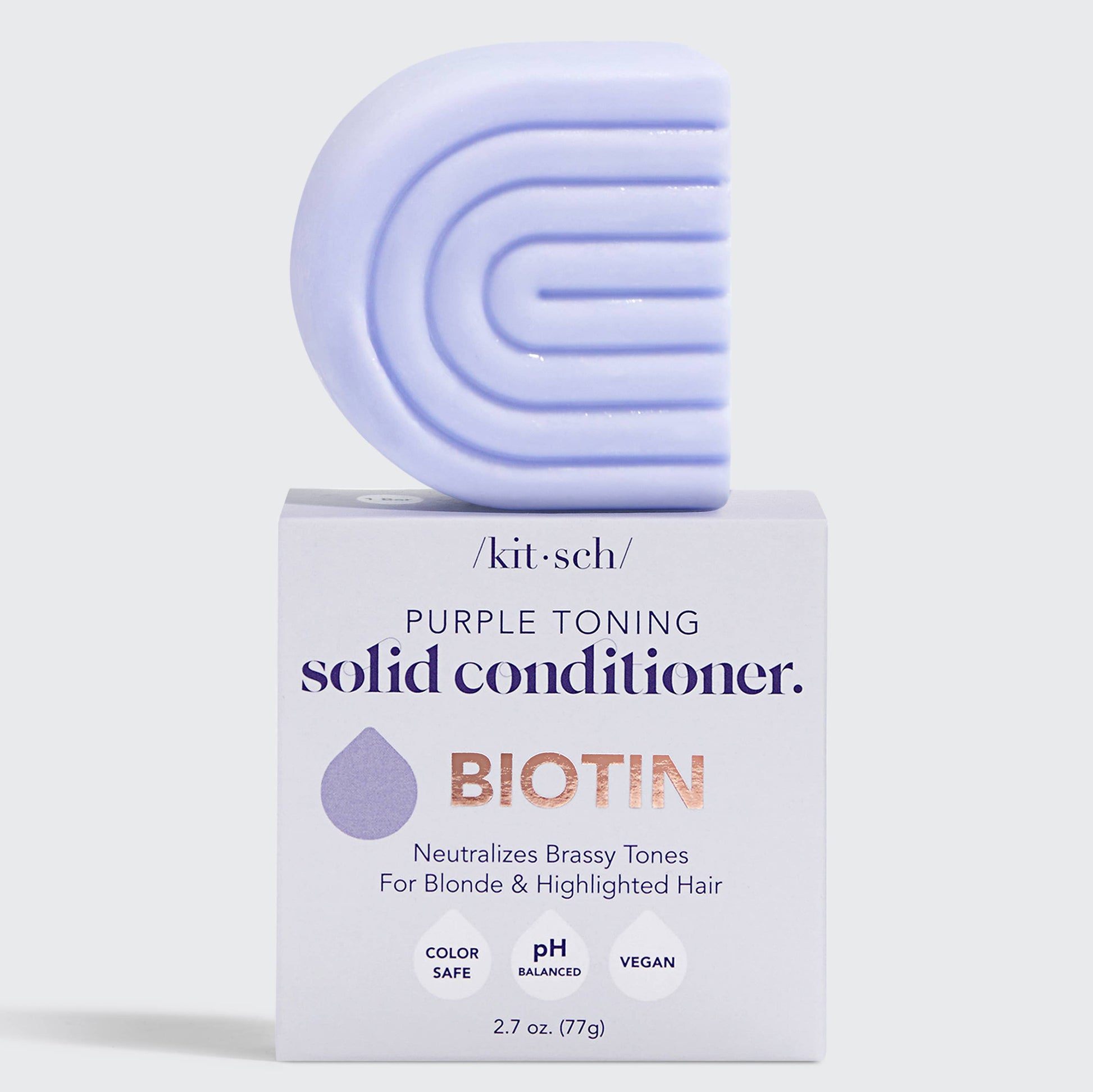 The world's first solid purple shampoo bar with Biotin! Safe for blondes, grey & white hair: color-treated, highlighted, & natural. Neutralizes unwanted brassiness and yellow undertones. Enriched with Biotin to boost shine, reduce dullness & strengthen your hair Enjoy smoother, stronger & more vibrant blonde hair after just one use! Free of parabens, phthalates, silicones, sulfates, & artificial fragrance Reduces single-use plastic: saves two bottles of liquid shampoo/conditioner Made in the USA with quality ingredients