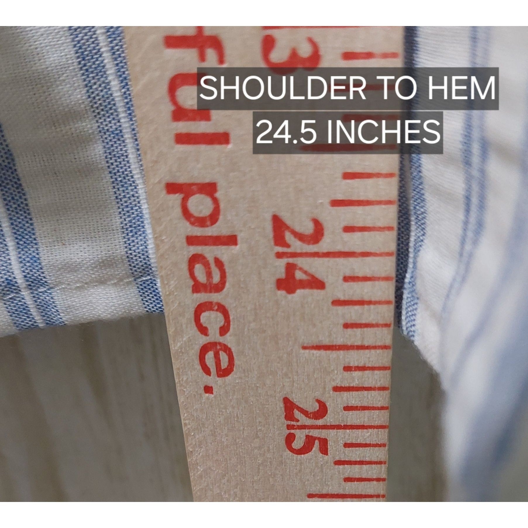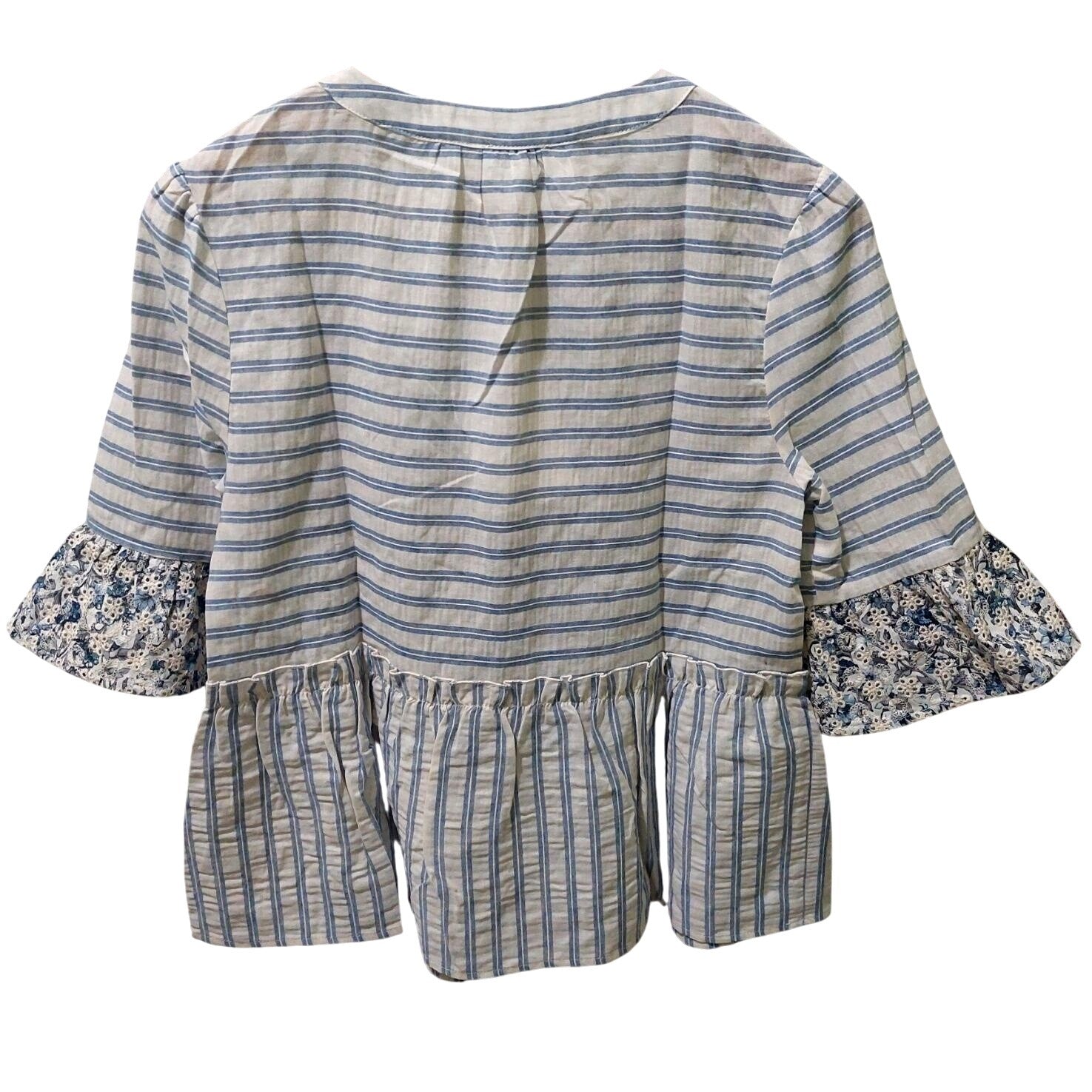 Voy Womens Blue Floral & Stripe Embroidered V-Neck Blouse~Boho~SMALL